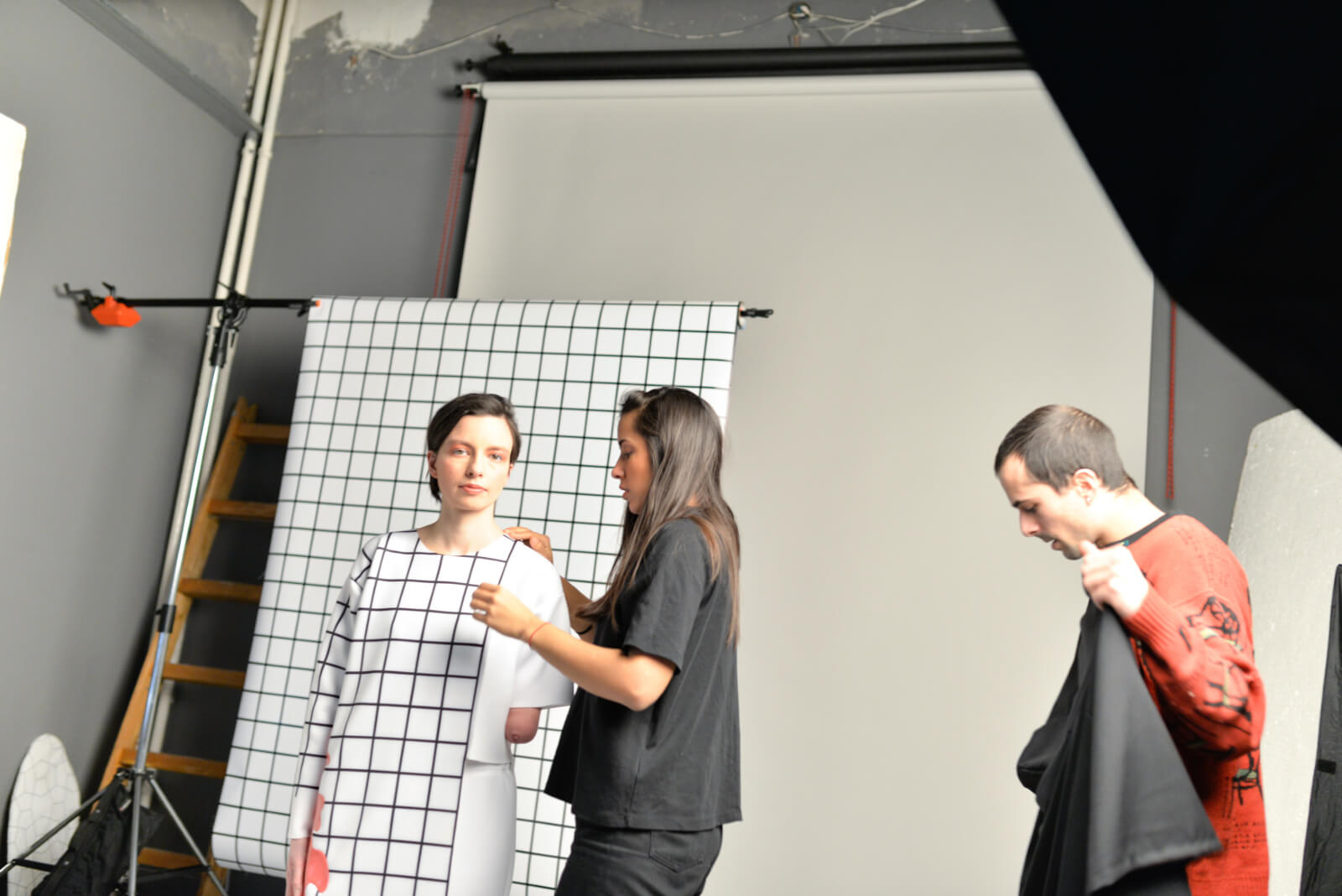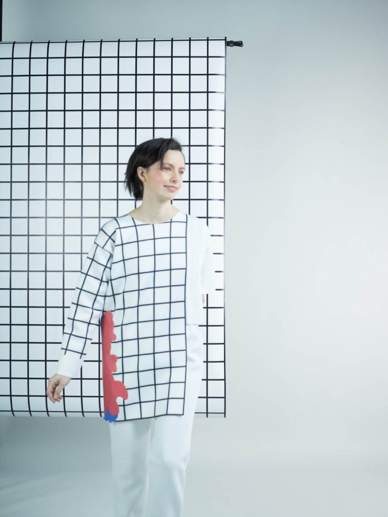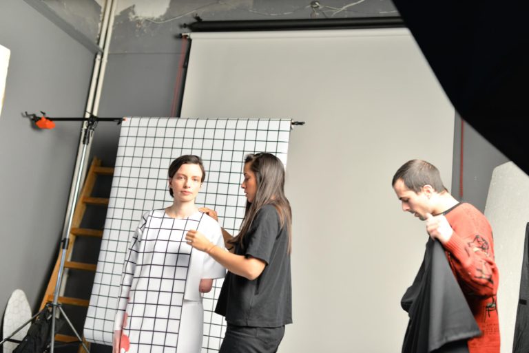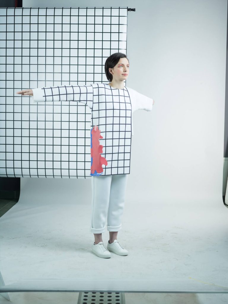 Nagyon vagánynak tartottuk, hogy Luca sosem takargatta, szégyellte a karját, sőt néha úgy tűnt, mintha végtaghiánya előnyére válna. Ezt a magabiztosságot igyekeztünk interpretálni az öltözék létrehozásánál. Nem hiányt akartunk pótolni, hanem testének aszimmetriájára helyezni a hangsúlyt – célunk a hiány esztétikumának szemléltetése volt. Az aszimmetria, és az így láttatott gesztusok, mozdulatok – például ahogy le- és felveszi pulóverét, vagy csak összefogja a haját – mind Luca kivételességét erősítik.
